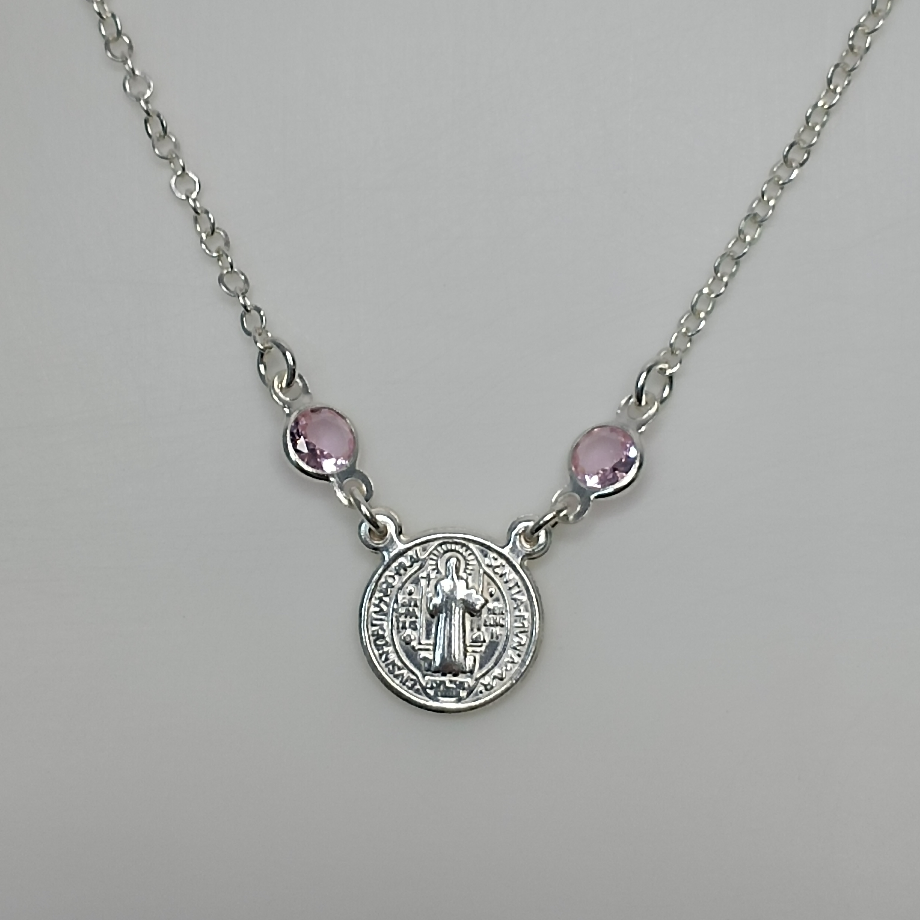 Gargantilha Choker Montagem 2 Zirconia Rosa Medalha São Bento Meio #G2-12
