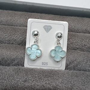Brinco Trevo Azul Perola Pendente #B3/50