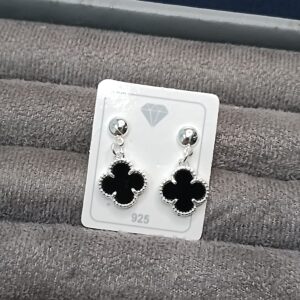 Brinco Trevo Preto Liso Pendente #B3/49