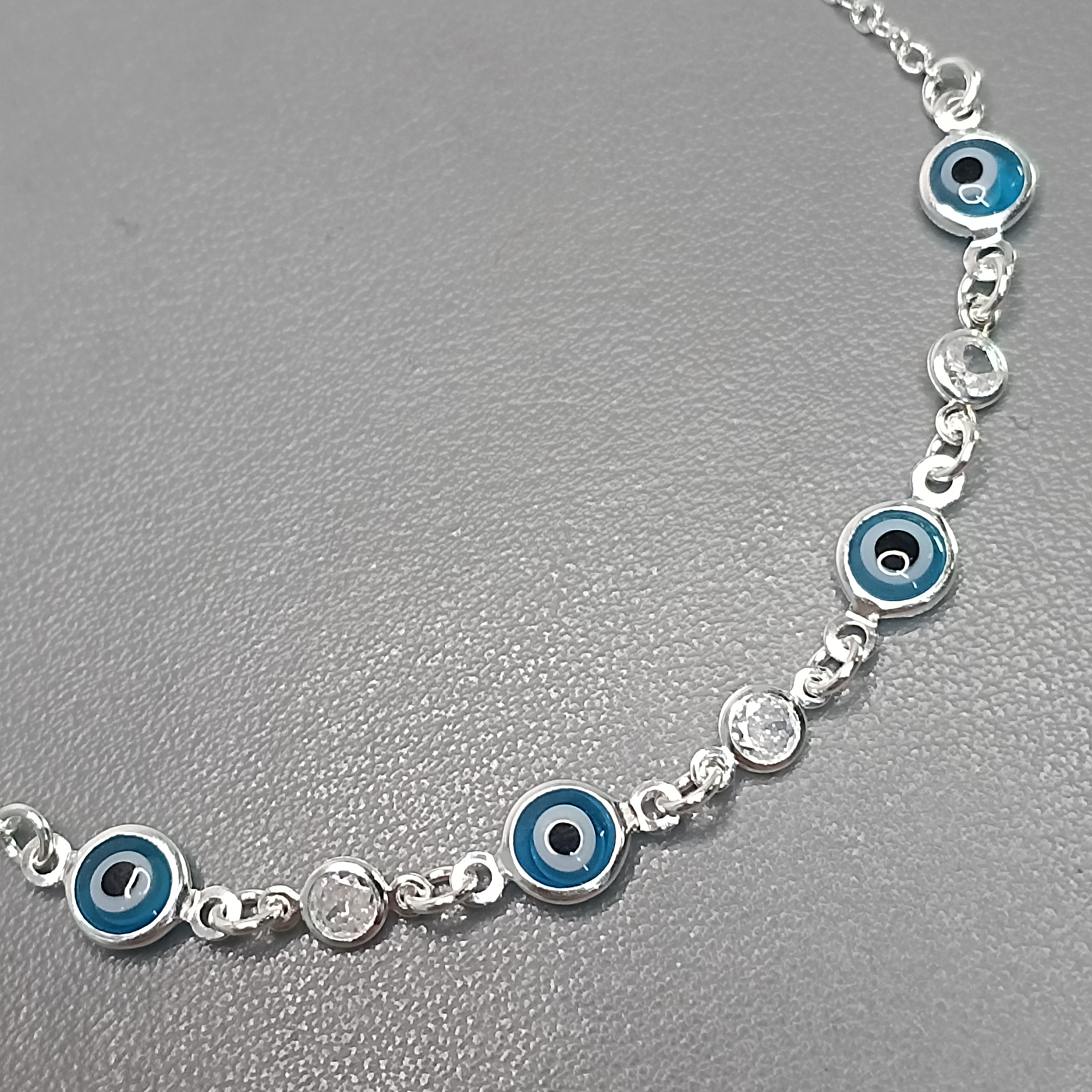 Pulseira 9 Olho Grego Branco Pequeno Pendente Fio #PU-75