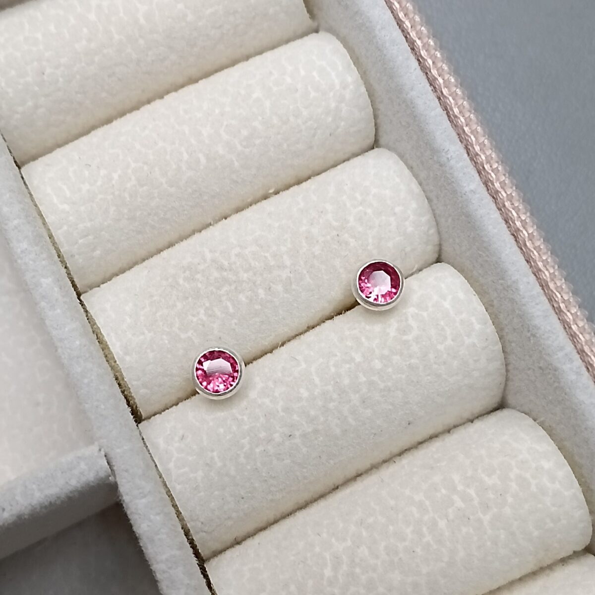 Brinco De Prata Zirconia Caflon Pink 4,5mm