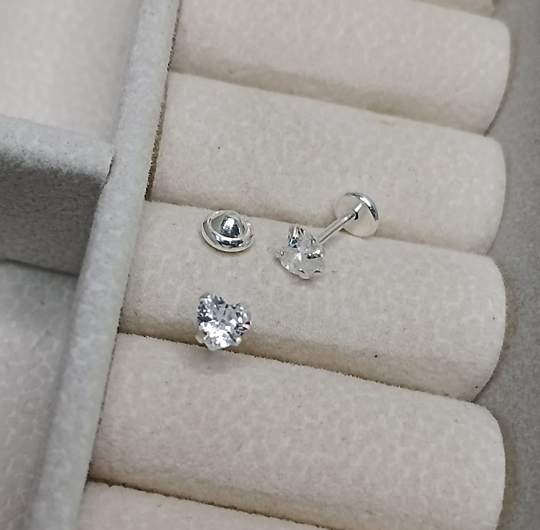 Brinco De Prata Zirconia Coração 4mm Taraxa Baby