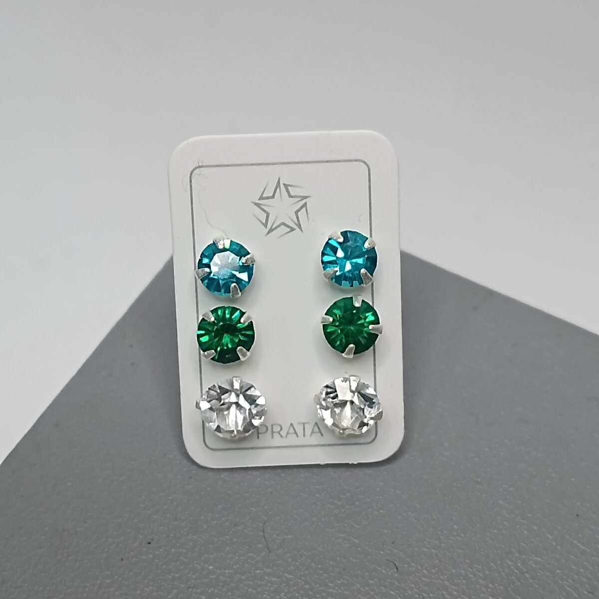 Trio Zircônias Azul Verde e Transparente 5mm